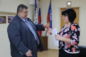 1 ноября мэр Саянска Олег Боровский вручил ключи от служебной 2-комнатной квартиры в доме №24 микрорайона Мирного учителю младших классов школы №5 Евгении Храмцовой.