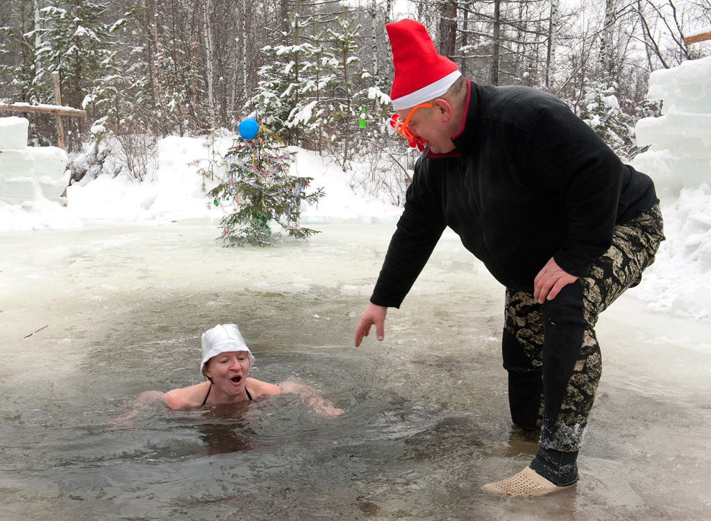 "Моржи" Саянска вместе с Дедом Морозом встретили Новый 2016 год