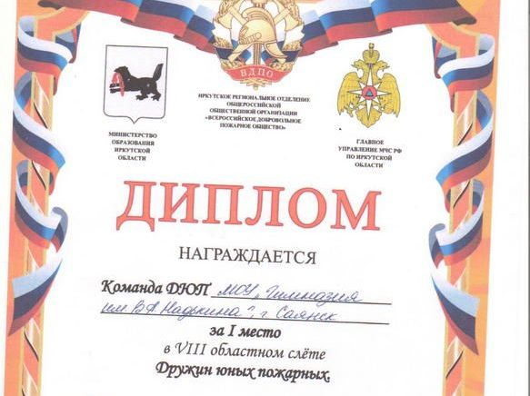 Организатором слета стало Иркутское региональное отделение ВДПО при поддержке МЧС и министерства образования области. Как рассказал Валерий Яковлевич, слёт проходил 27-28 октября на базе центра «Галактика» г. Ангарска. Вместе с саянцами в соревнованиях участвовали 19 команд из разных уголков региона. Гимназисты, как победители городских соревнований, второй год представляют наш город. В прошлом году они стали бронзовыми призерами, а нынче выиграли чемпионский кубок! Соревнования проходили в несколько туров. В конкурсе «Домашнее задание» ребята сняли видеоролик о работе дружины пожарных в своей школе. В теоретических конкурсах юные пожарные Саянска набрали наибольшее количество баллов. Они отвечали на 80 вопросов теста и демонстрировали навыки оказания реанимационной помощи пострадавшему на манекене-тренажере «Гоша». Надо отметить, что в гимназии нет современного тренажера, ребята занимались в ДОСААФ. В эстафете саянцы также показали один из лучших результатов. Состояла она из семи этапов: надевание боевки, преодоление полосы препятствий, оказание первой доврачебной помощи, транспортировка пострадавших, преодоление двухметрового забора, бег с пожарными рукавами по буму, подъем по штурмовой лестнице.