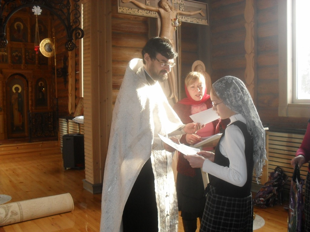 Награждению участников конкурса предшествовал благодарственный молебен. Со словами приветствия к детям обратился священник Владимир Данилко. "А знаете ли вы, - спросил он, - кто является прообразом Деда Мороза? Это живший в четвертом веке по Рождестве Христовом святитель Николай Чудотворец. Он прославился добрыми делами во время своей земной жизни и ныне никого не оставляет без помощи. Каждый из нас может почувствовать это, обратившись к святителю Николаю. Не письма Деду Морозу надо писать, а помолиться у образа Николая Чудотворца". И многие из пришедших в Храм, воспользовавшись возможностью, поставили свечечки у образа святого.