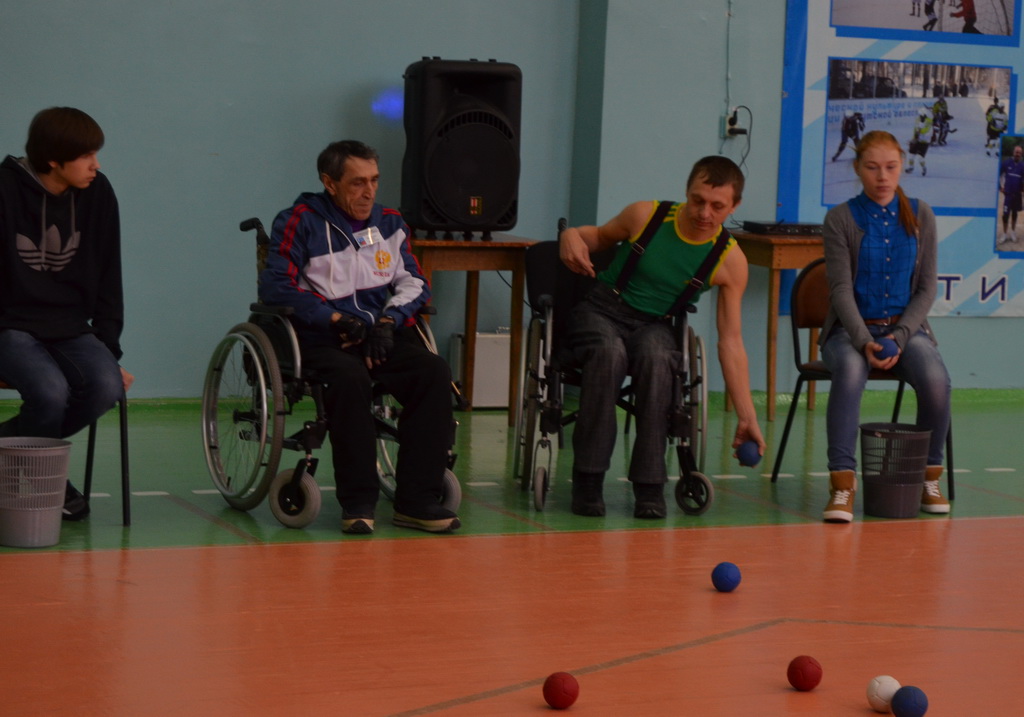 Соревнования по игре в шары бочча проходили по двум группам: BC 1 (люди с тяжелой формой ДЦП) и BC 4 (люди с травмами и тяжелыми формами заболеваний). Главным судьей была Ирина Михайловна Дружинина, член общества инвалидов-колясочников «Шанс» и тренер спортсменов.