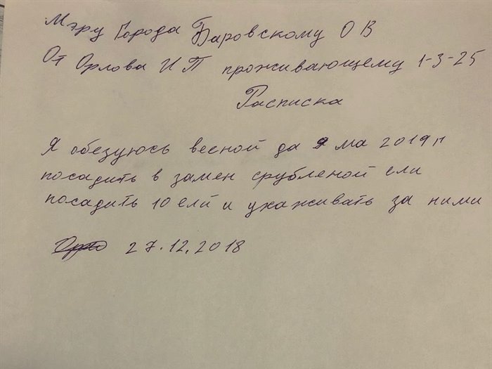 Вот так решился вопрос по срубленной ели. Другим это будет уроком!