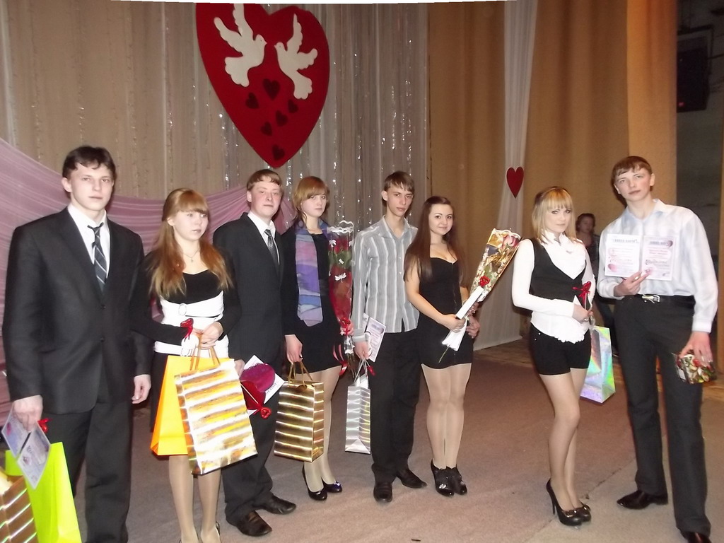 В «Юности» прошёл конкурс «Седьмое чувство». Организовали его специалисты администрации из отдела по молодёжной политике и спорту. Участниками конкурса влюбленных стали шесть юных парочек и одна семейная пара. Выйти на сцену и сказать о своих чувствах во всеуслышание решились Сергей Широких и Ольга Смирнова (гимназия №1), Виктор Чернышов и Анастасия Шагай (школа №5), Никита Росляков и Мария Солодкова (школа №7), Олег Леонович и Ольга Полынова (колледж экономики и туризма), Иван Ющенко и Яна Григорьева (колледж экономики и управления), Николай и Наталья Пакусины из медицинского училища.