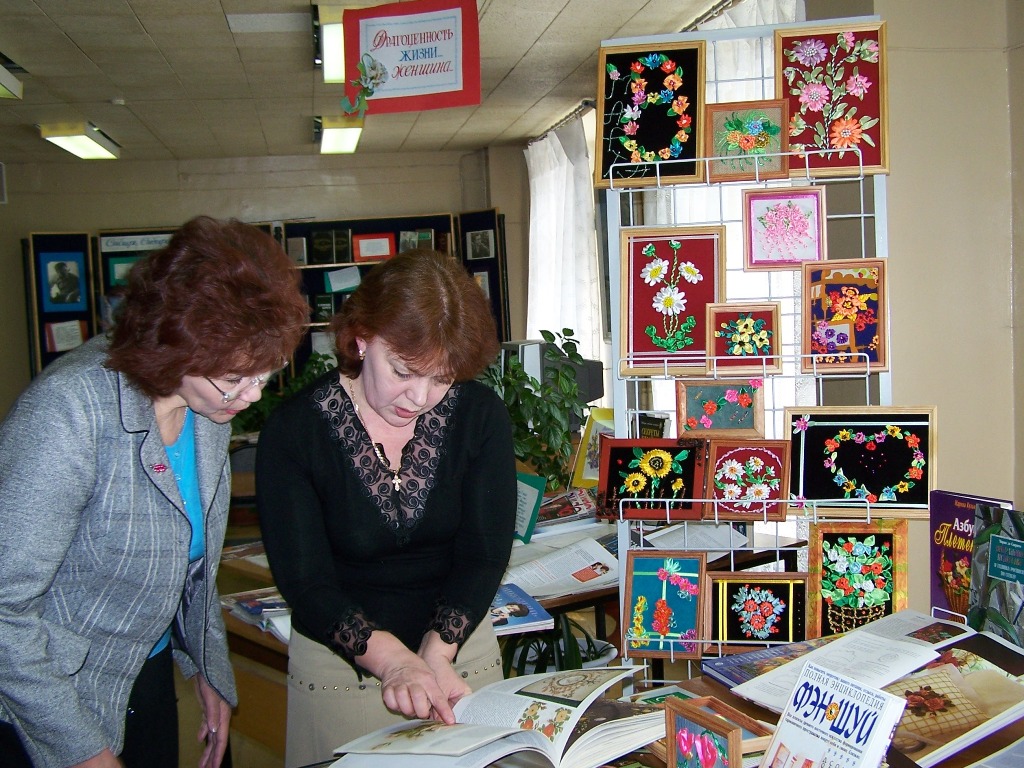В читальном зале центральной городской библиотеки постоянно оформляются выставку периодики. Так, в марте на отдельных стендах появилась подборка публикаций, объединенных темой «Драгоценность жизни – женщина». Здесь любая представительница прекрасной половины человечества может найти для себя интересный материал по семейной психологии, оформлению дома, созданию вышивок… Но настоящей изюминкой обзорной выставки стали творческие работы одной из давних читательниц библиотеки.